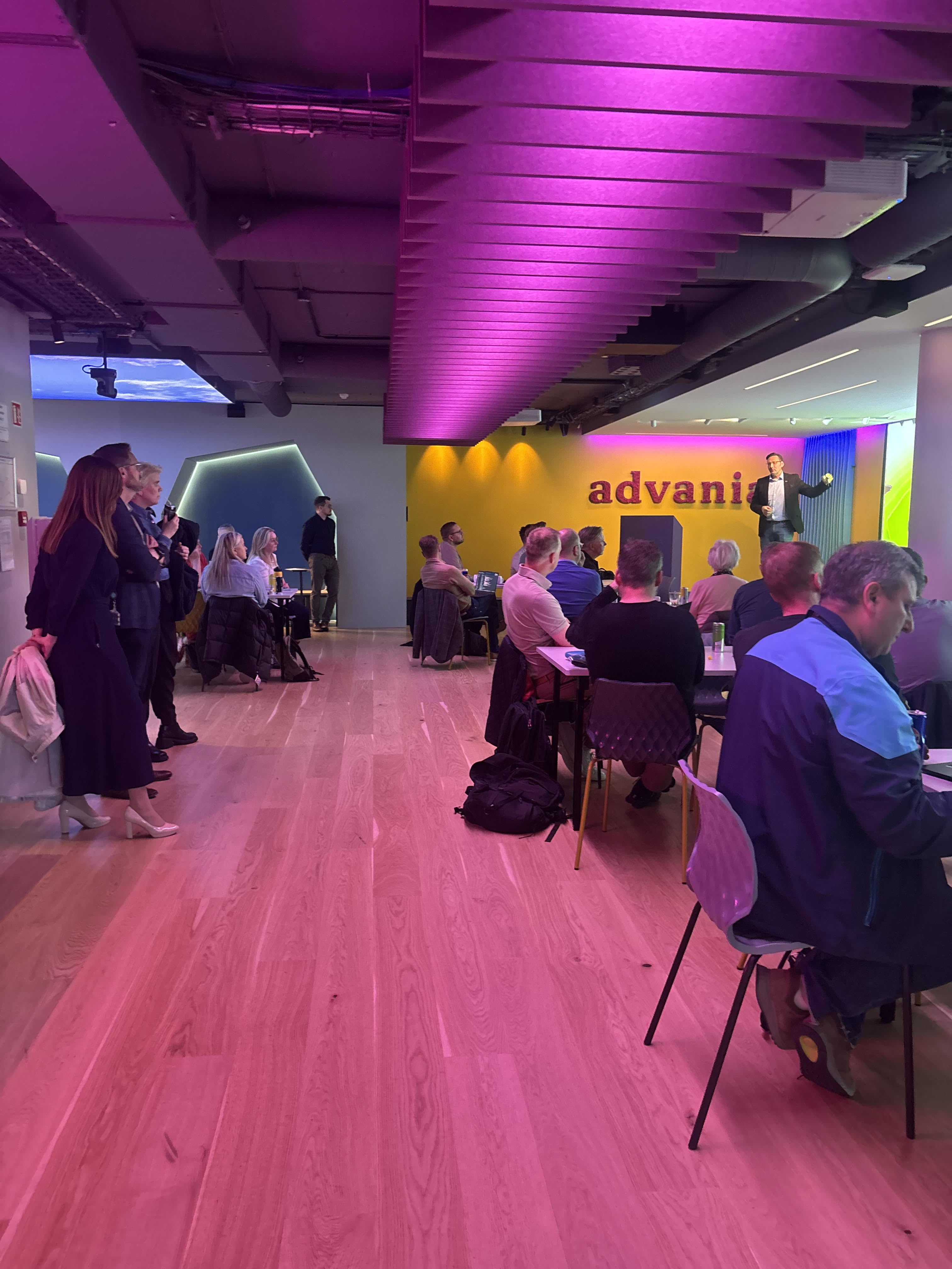 Við hófum leika á i vinnustofu þar sem þátttakendur fengu tækifæri til að deila sín á milli af eigin sýn og reynslu. Fóru strax af stað áhugaverðar umræður varðandi helstu áskoranir og tækifæri sem fyrirtæki standa frami fyrir í tengslum við innleiðingu gervigreindar í sinni starfsemi. Umræðunum stýrði Þórður Ingi Guðmundsson forstöðumaður hjá viðskiptalausnum Advania ásamt góðum hópi starfsfólks Advania.