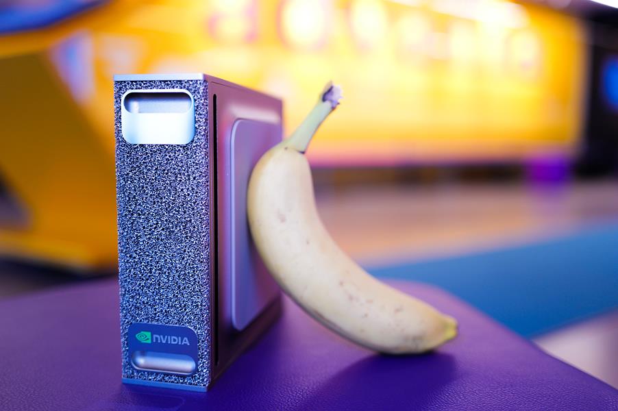 NVIDIA Spark í höfuðstöðvum Advania (banani til stærðarsamanburðar)