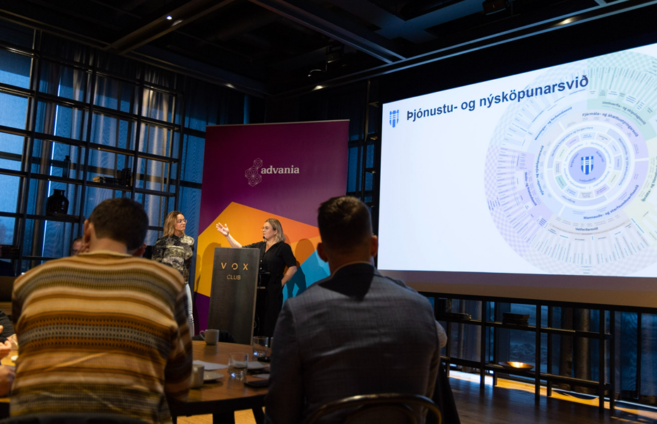 Elísabet Ingadóttir deildarstjóri og Sunna Þrastardóttir teymisstjóri í þjónustuveri Reykjavíkurborgar, fóru yfir hvernig Genesys skýjalausnin hefur styrkt þjónustuver borgarinnar og spilar stórt hlutverk í stafrænni vegferð sveitarfélagsins.