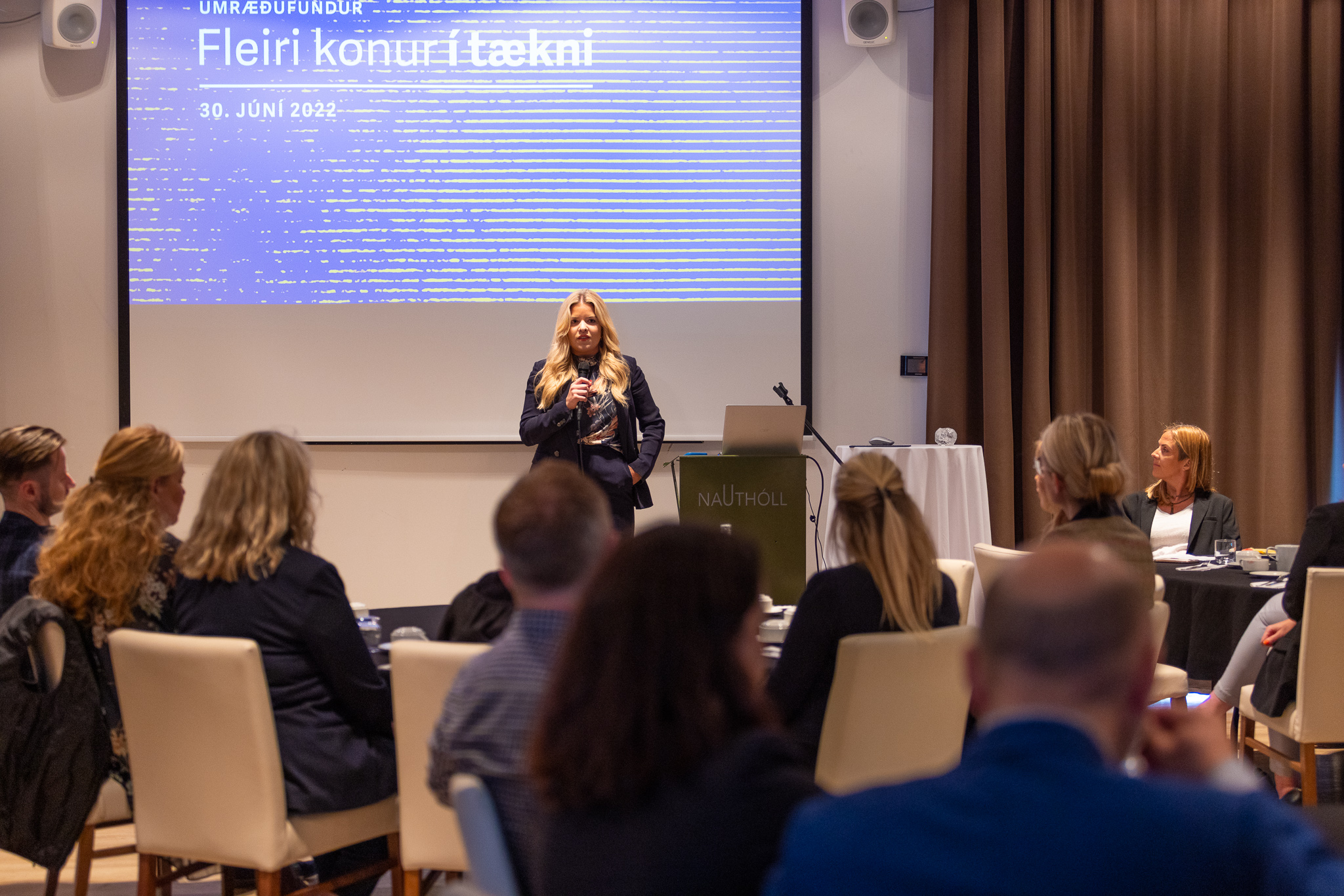 Áslaug Arna Sigurbjörnsdóttir, háskóla- iðnaðar- og nýsköpunarráðherra, deildi þeim vilja fundargesta, að nýliðun kvenna í geiranum væri nauðsynleg. „Það skipir höfuðmáli að fjölga konum í tæknigreinum ef við ætlum að ná þeim markmiðum sem að er stefnt í íslensku samfélagi. Ég fagna því þessu frumkvæði enda skiptir máli að allir leggist á árarnar, stjórnvöld, menntakerfið og atvinnulífið. Hér eru tækfæri sem við eigum að grípa!“